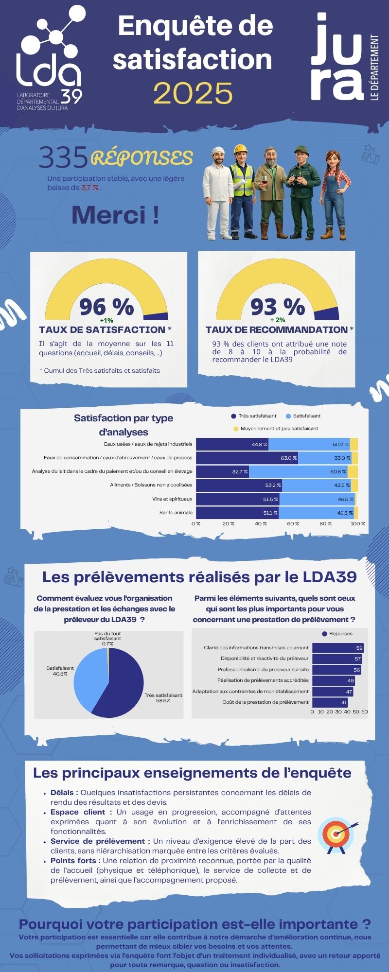 Découvrez les résultats de notre récente enquête de satisfaction, menée auprès de nos clients ayant confié au moins un dossier d’analyse en 2025. Vos retours sont essentiels pour améliorer nos services et répondre au mieux à vos attentes. Nous vous remercions pour votre participation et pour la confiance que vous nous accordez.